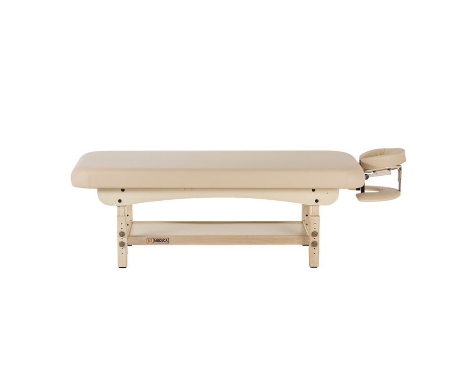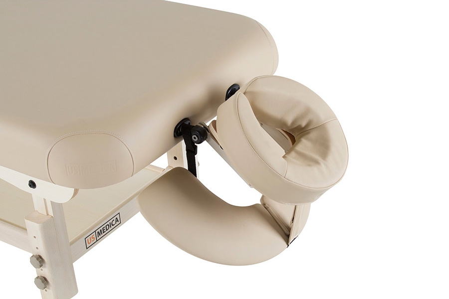 Стационарный массажный стол US Medica Atlant имеет прочный каркас из бука, что делает стол не только устойчивым, но и максимально надежным при регулярном использовании. Комфорт клиенту во время массажа на данном столе обеспечивают упругий вспененный наполнитель и качественная обивка из арпатека премиум-класса Skin Touch.