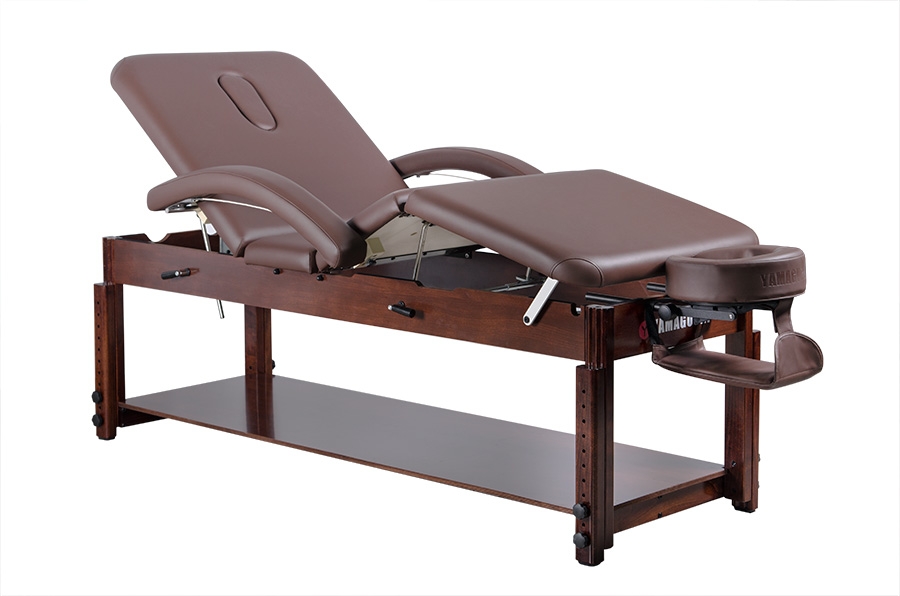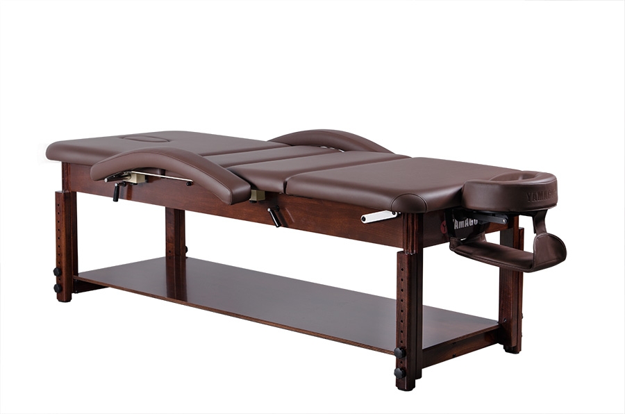 Стационарный массажный стол Yamaguchi Naomi обладает особой конструкцией, благодаря которой можно без особого труда отрегулировать секции для ног и спины